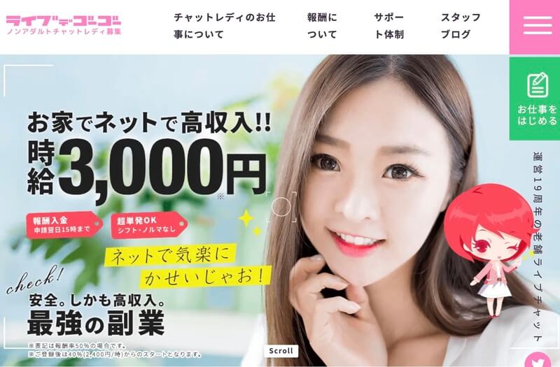 ライブでゴーゴーはライブチャットサイトですが、メールのみのメールレディとしてもお仕事が可能です。